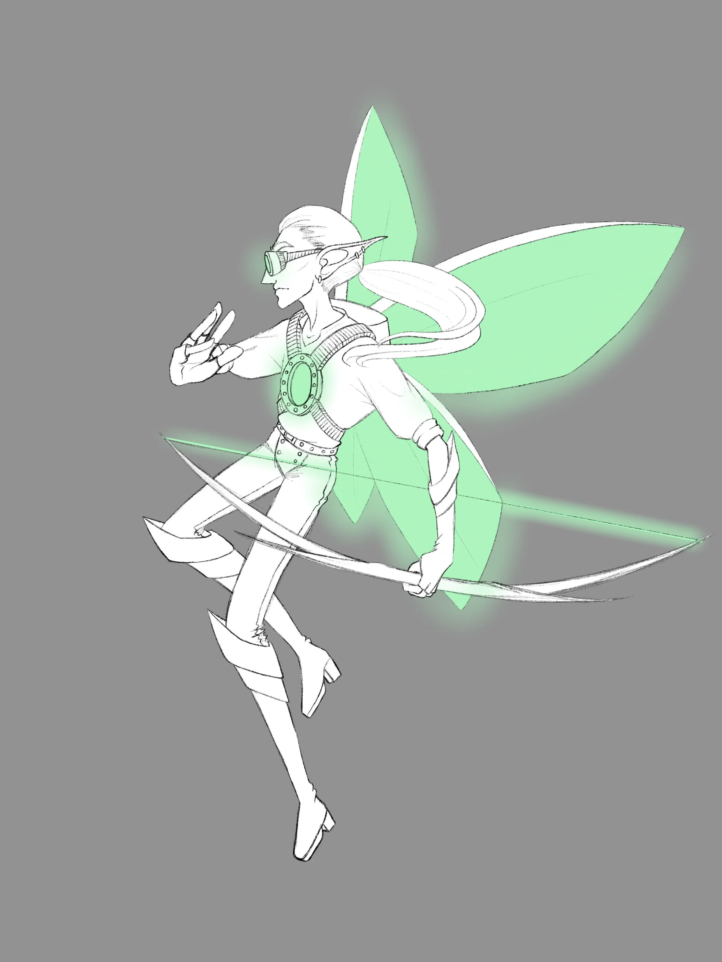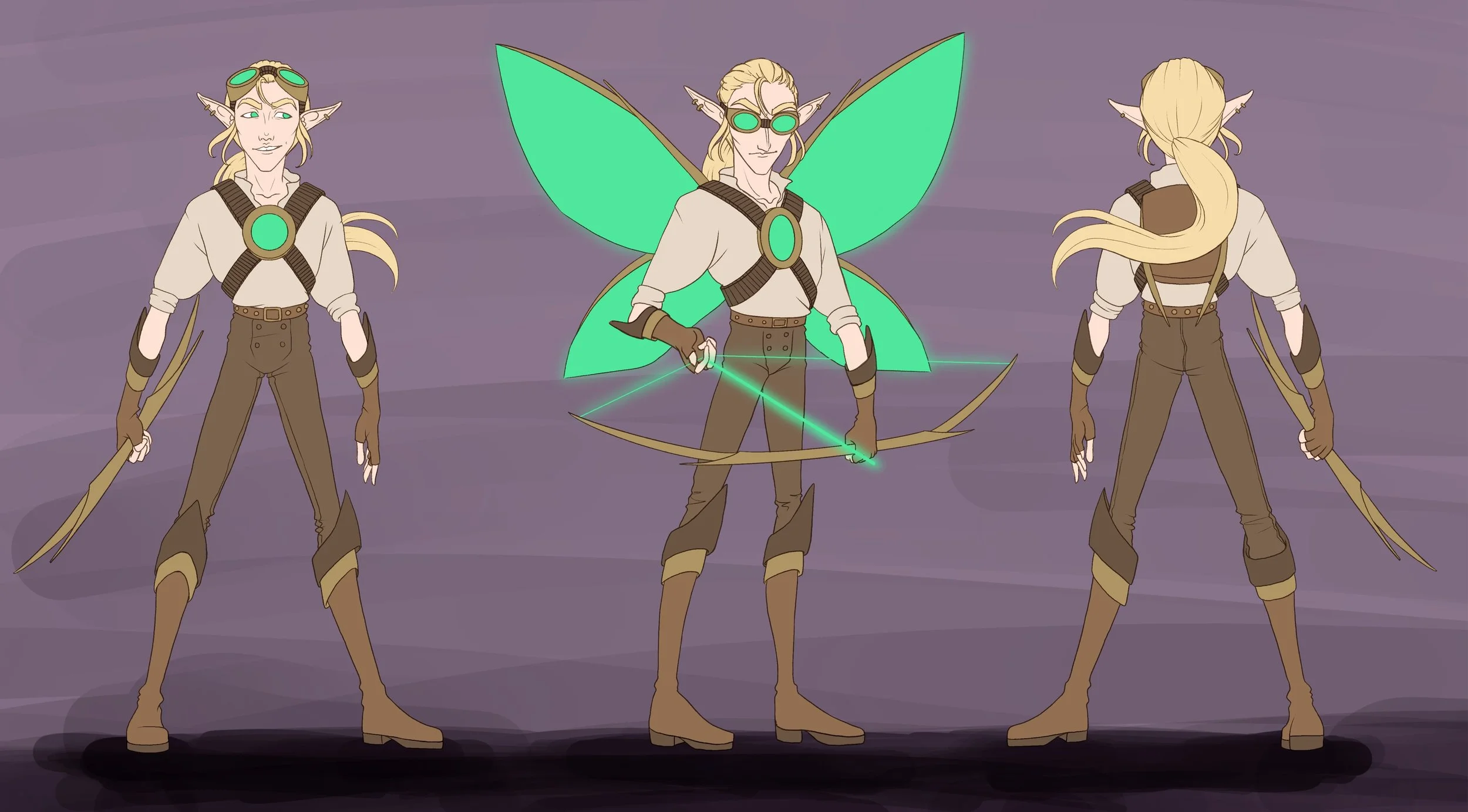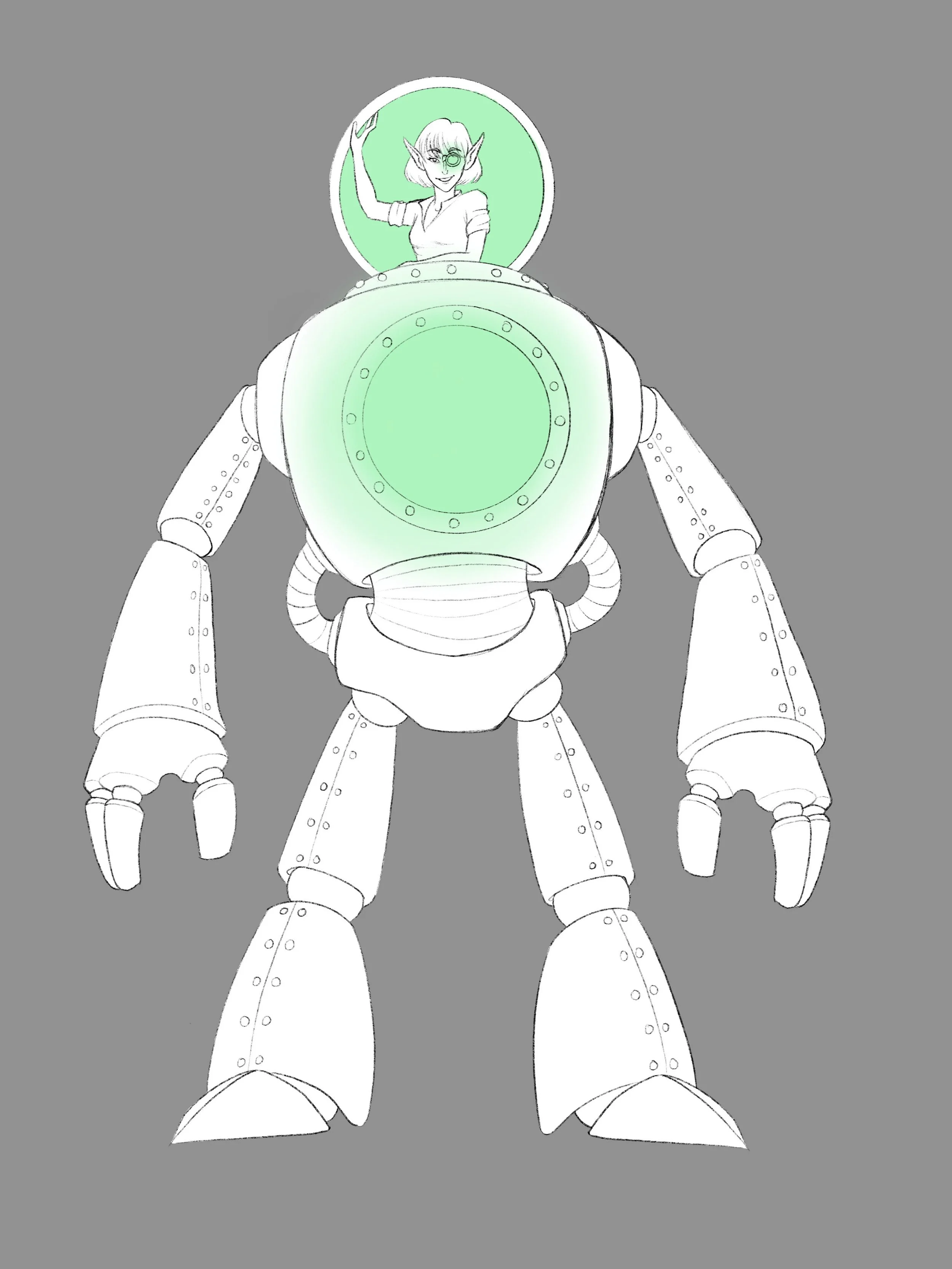 While dragons, elves, and wizards are all staples of the fantasy genre, mechs are a bit of an outlier in this group. This led me to a game premise of Technology (the elves and mech) vs Magic (the wizard and dragon). With this central conflict in mind, I took the initial character designs in a steampunk direction.